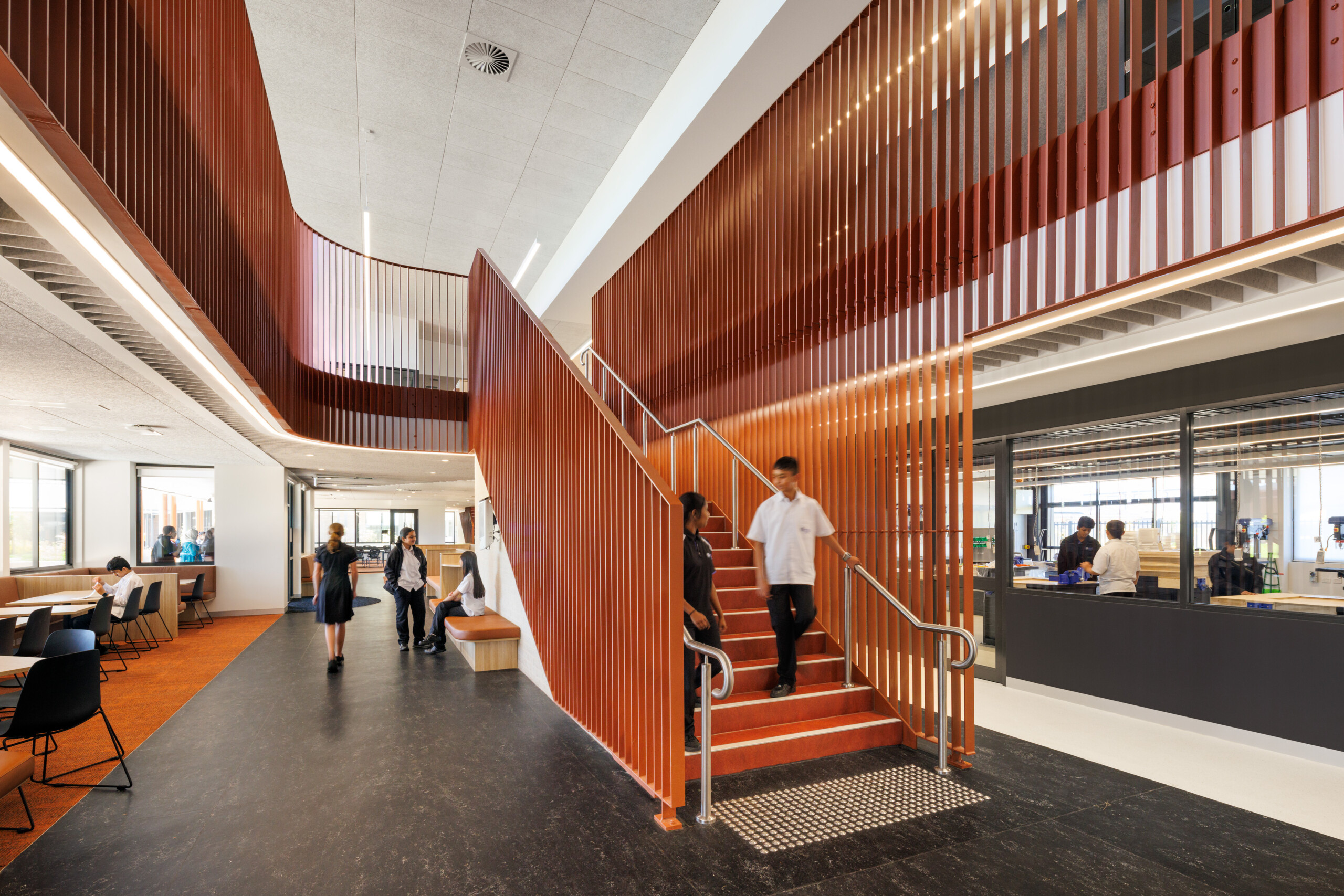 Brinbeal Secondary College demonstrates an exemplary approach to inclusive education design. The decentralised wellbeing model, flexible learning neighbourhoods, and strong sustainability principles create a campus that is both innovative and deeply responsive to student needs.