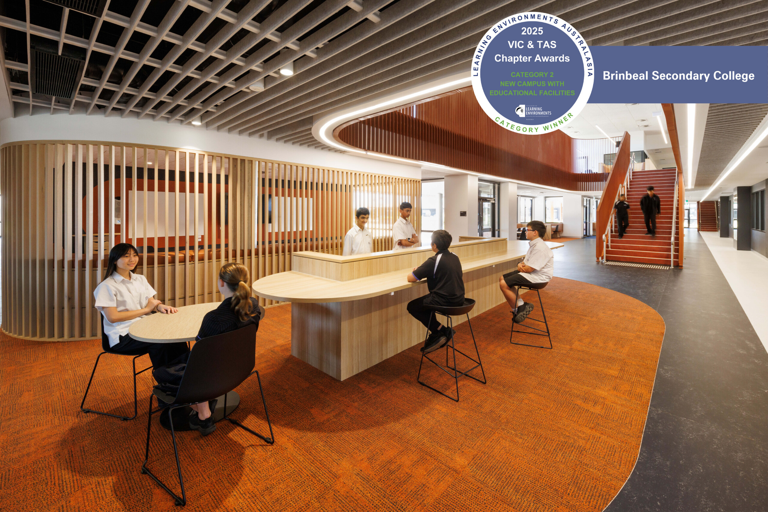 DesignInc Melbourne, in collaboration with Brand Architects, has been named Winner – Category 2: New Campus with Educational Facilities at the Learning Environments Australasia (LEA) Victoria Chapter Awards for our work on Brinbeal Secondary College.