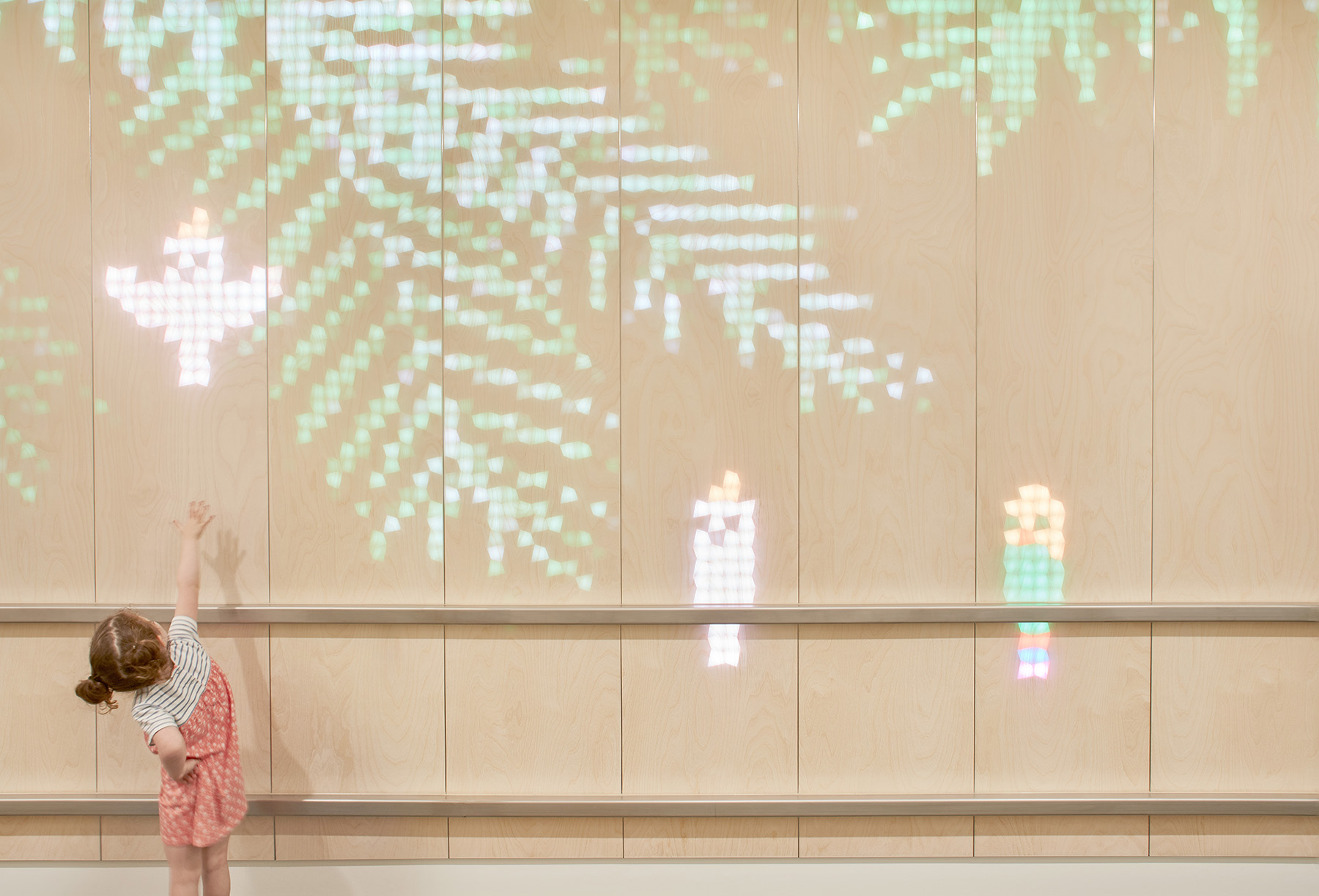 This is also the case with our more modestly-sized projects, such as Alfred Health’s main reception area and the redevelopment of Cabrini Paediatric Ward. The latter is especially notable for its use of technology to engage young patients by exploring ideas of play through an interactive mural that features animations of animals and the natural environment. It softens the experience of being in a clinical setting by providing a distraction and instead sparking wonder, discovery and joy.