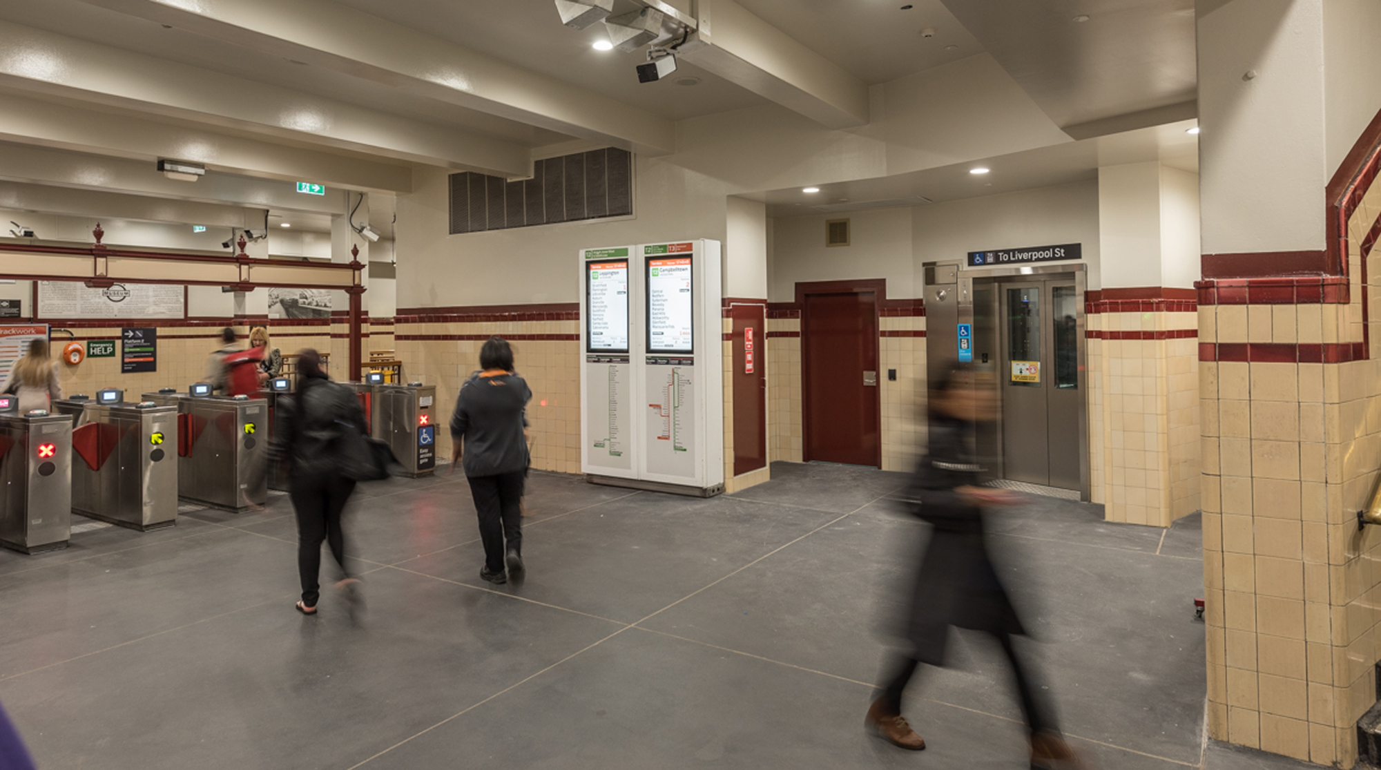 DesignInc worked closely with a range of consultants to design and document a sympathetic architectural solution that meets both the accessibility and heritage requirements. The upgrade includes a new lift from the Elizabeth Street entry to the underground station concourse, two new lifts connecting the concourse with the platforms, an accessible ramp at the entrance, a new accessible family toilet, refurbishment of existing amenities, CCTV security and lighting throughout.