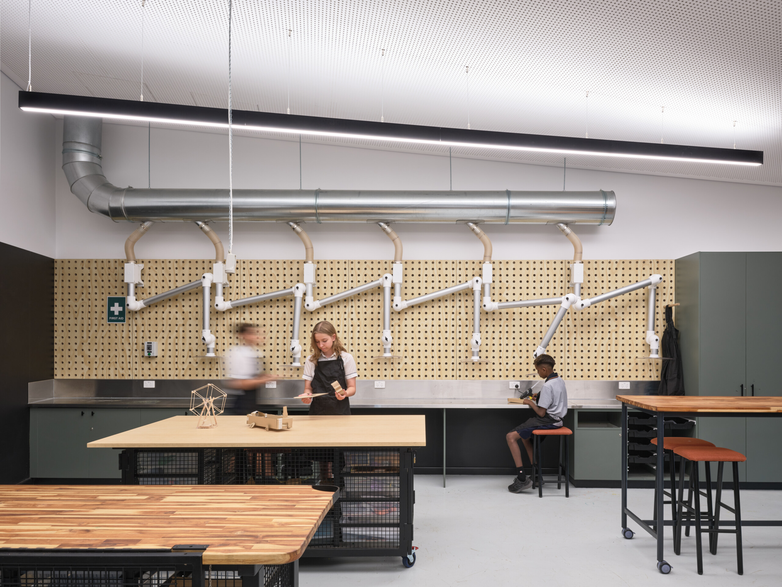 Set within Australia’s central landscape, the building engages with its surroundings and honours community ties and cultural heritage. As the latest addition to the school’s master plan, it has reinvigorated the campus, bringing a renewed sense of pride, perspective, and optimism for the future. The grand opening celebrated this milestone with excitement and community pride. The Centre accommodates a wide range of teaching methodologies, drawing on the strengths each educator brings. Learning spaces are open, flexible, and adaptable, with mobile furniture, AV displays, and specialised zones such as tech labs, laser cutters, and ‘dirty learning’ areas. Every element encourages hands-on discovery, collaboration, and well-being. Openness and transparency throughout the building fosters interaction and connection, supporting the school’s work ethic and culture while motivating students to explore and engage with their learning environment.