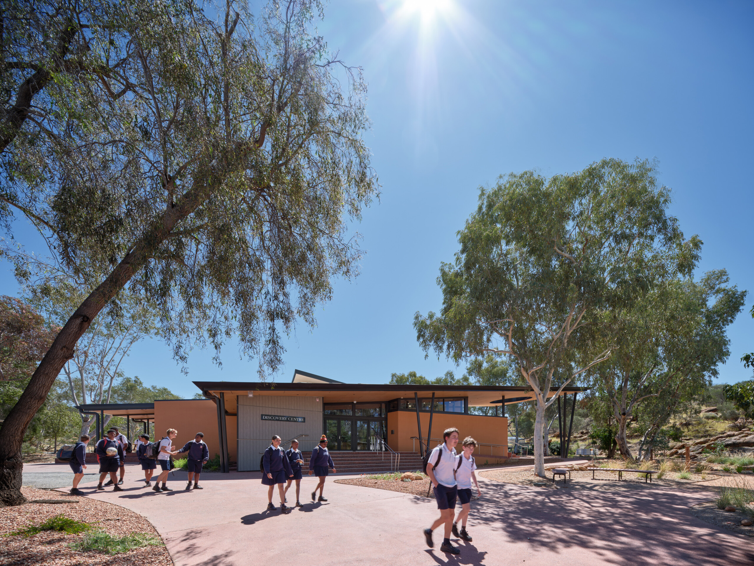 St Philip’s Discovery Centre is a purpose-built learning environment in the heart of Alice Springs, connecting students with nature, culture, and their community. Reflecting the school’s vision — ‘Discovering our place in the world through an adventurous education.’ — the design brings life to the values of striving, seeking, and caring with heart.
