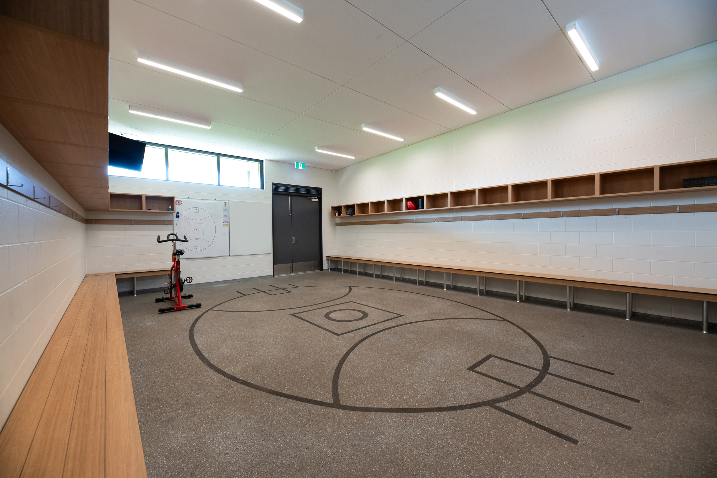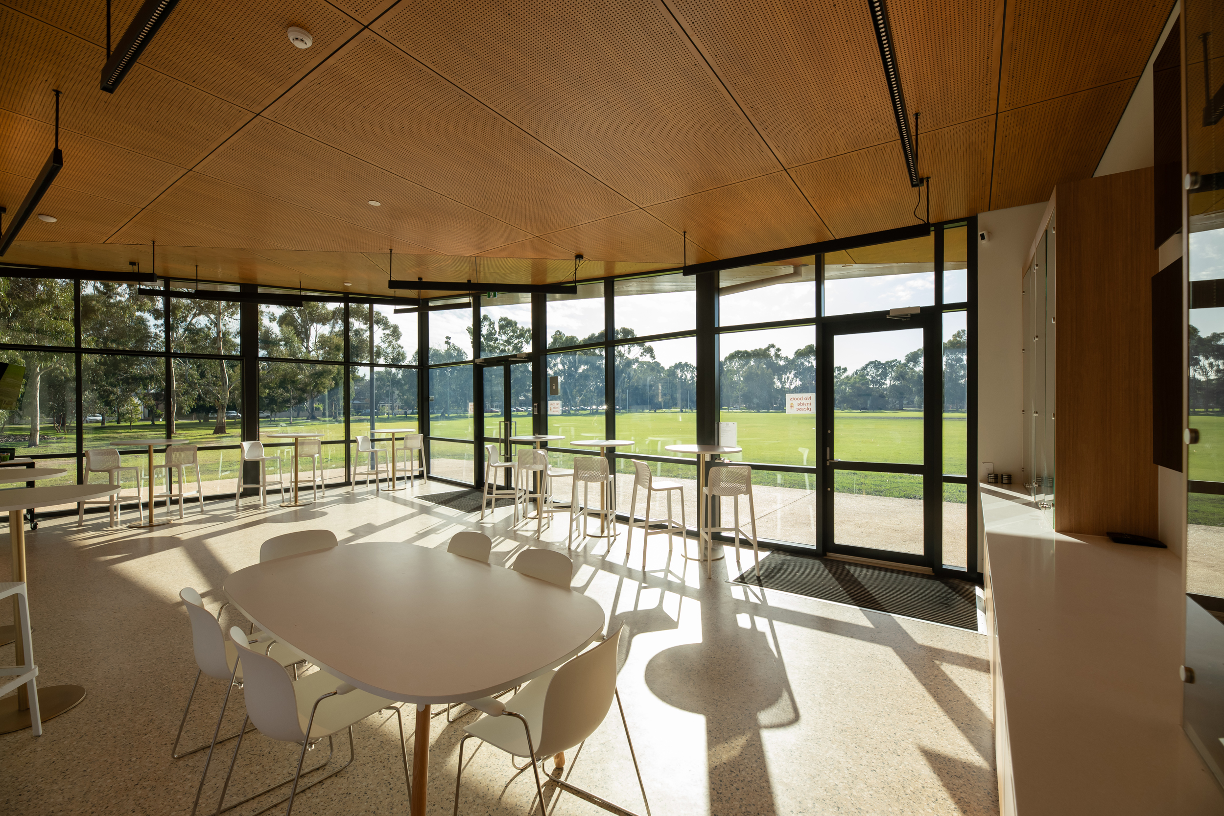 The hub features AFL and SACA-compliant changerooms, unisex amenities, a modern kitchen, flexible community spaces, and improved viewing areas. Natural materials add warmth and reflect the character of the landscape.